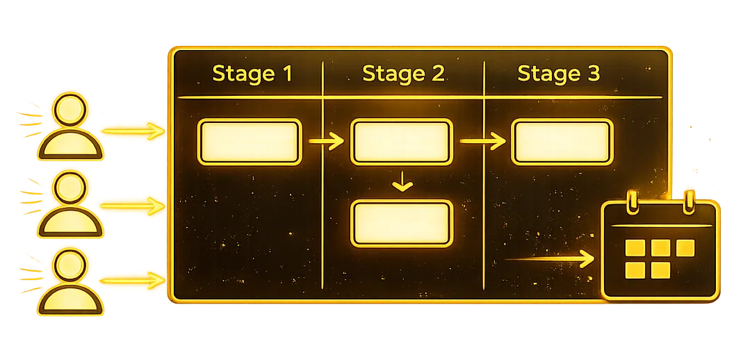 The core architecture is pre-engineered for reliability and speed, while key components like your CRM structure, automation flows, and booking system are configured specifically for your workflow.
